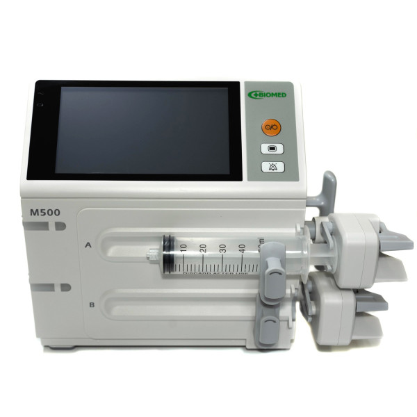 • Екран: Шприцевий насос M500 оснащений великим 6,2-дюймовим кольоровим, сенсорним дисплеєм із можливістю регулювання кута нахилу екрану від 0 до 45 градусів забезпечує зручність налаштувань та комфортну візуалізацію процесу інфузії.